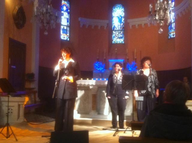 Après Oh Holy Night voici le groupe pour Glory Glory Hallelujah. Renée avec « Les Swingeurs » Florence et Françoise. Merci à Cathy d'avoir présenté ce concert et merci à Jean Paul François pour le son et la lumière, c'était magnifique et, merci pour la photo!